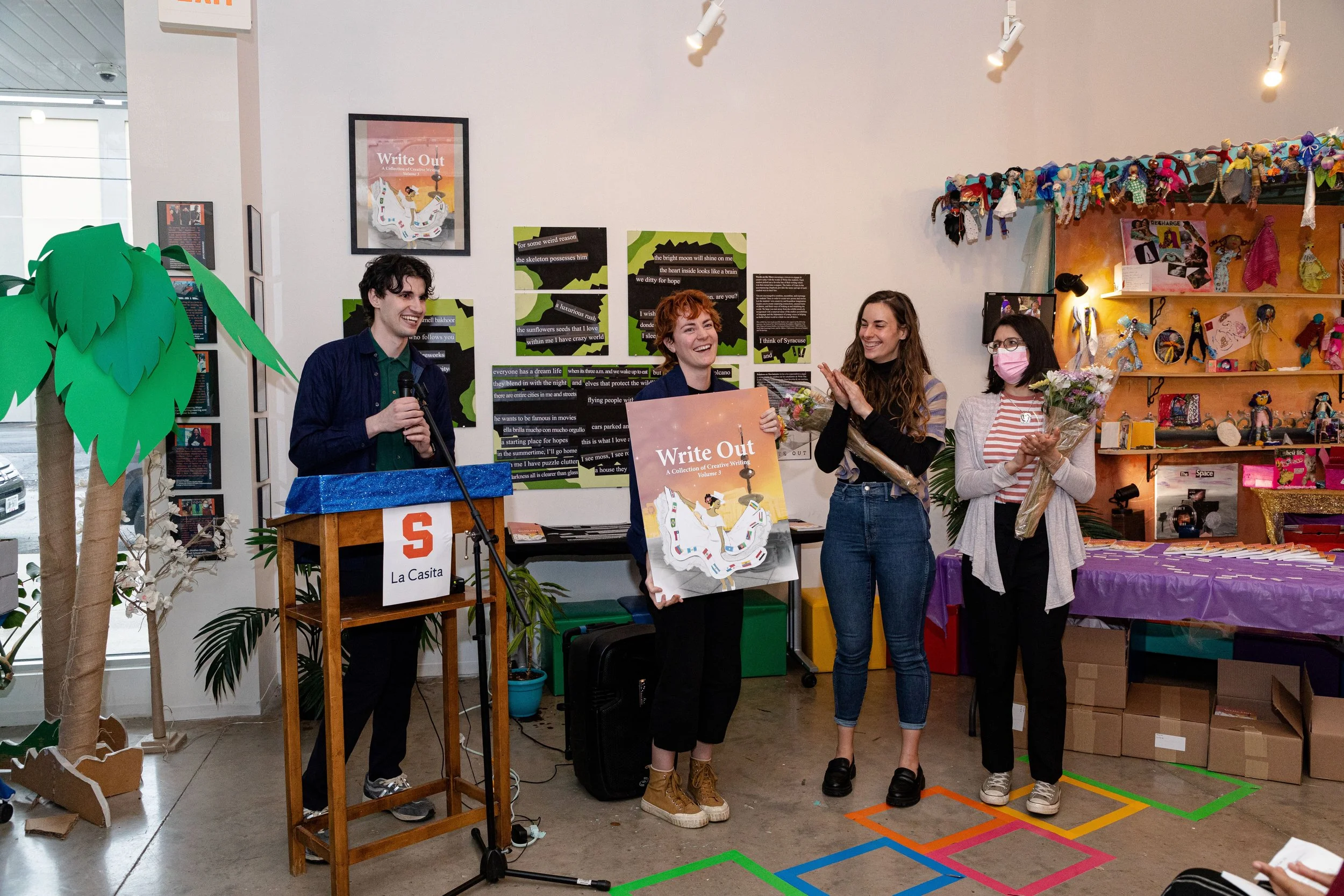 Since we first launched in 2020, Write Out has partnered with teachers, artists, and community leaders from the North Side Learning Center, Girls Inc. at the YWCA, La Casita Cultural Center, MercyWorks, the Museum of Science and Technology, and more. Each year, our afterschool programming culminates in a published chapbook of student work, for which we host a launch party and a public reading to further encourage our students to see themselves as thinkers, writers, and leaders.